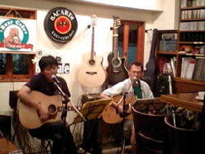 ドリーム常連のベーシスト「ミトちゃん」が所属するアコースティックデュオ「落花星」のライヴを見に行って以来、時々お邪魔しているお店である。