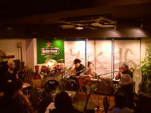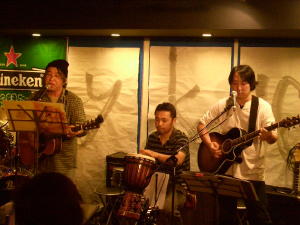 彼らとは前回のTAPアコースティックライブでご一緒させて頂いたが、今回は女性ヴォーカルとパーカッションを入れた4人編成で登場、懐かしいカバー曲を集めたステージを展開する。