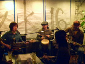 根岸Bear Cafeのマスターとハナ*オトとのコラボ・・・というか、今回はBearさんのバッキングに徹したハナ*オトのお二人、見事にBearさんの楽曲の魅力を引き出してくれる。