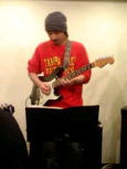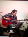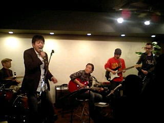 普段アコギを操っているミゾちんがストラトを泣かせ、今回バッキングに徹するyonたろうさんは、なんとこの日の為にセミアコを新調、更に岸壁のバンマス・花板さんがドラムに転職。