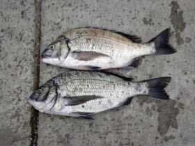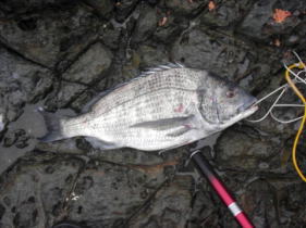 充分に黒鯛釣りを楽しまれたお代官様は、ようやくこの1枚を玉網に収め、この日も前日に続いて黒鯛を手中にする事が出来たそうでございます。