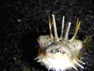 オイラ生まれて初めて、ハリセンボン釣りました。しかも、ミドリツブで(でもコイツむっちゃカワイイっす!思わず記念撮影させてもらいました)