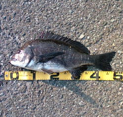 ![]() ハラボー氏の生涯初黒鯛(48cm)の図 |