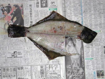 pochiko一家の腹の中に納まり、無残な姿になったマコガレイの図