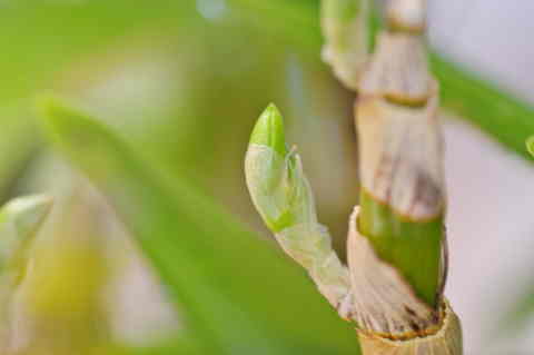 花芽とバルブの新芽が伸び始めた。