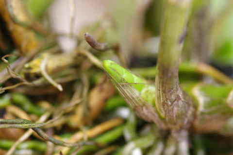取り合わないように、開花が終わった後にバルブの新芽が出て欲しかった。