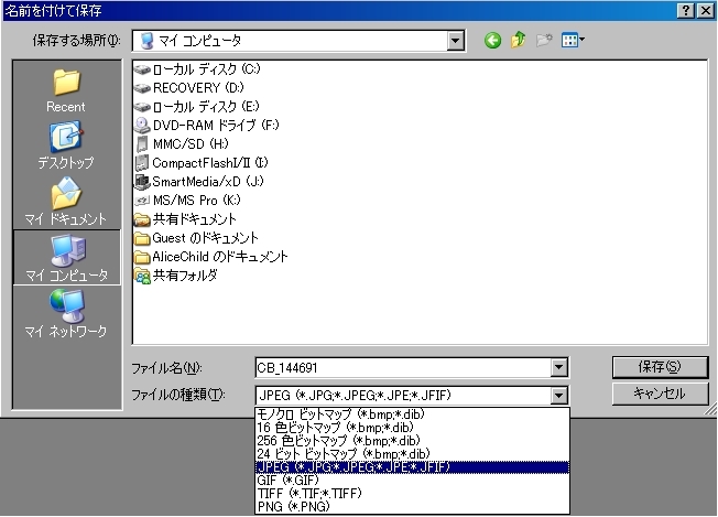お絵かき掲示板には一定数以上のサイズの写真はアップロード出来ないので、比較的軽い.jpgという形式に変換しなくてはなりません。
