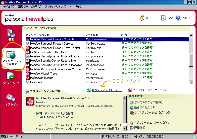 次に許可するアプリケーションをクリックして