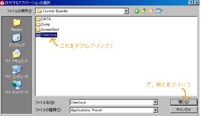 Client.exeをダブルクリックした後、開くをクリック。これで完了です。