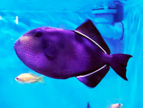 フグの仲間とは思えないような色をしたフグ目の魚。 意外と攻撃的な種類です。 |