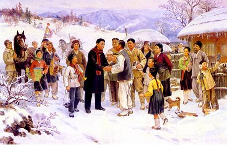 演芸宣伝隊を引き連れて社会・政治活動の模範を示す金日成主席