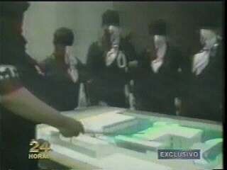 精巧な模型の前で作戦を検討するMRTAゲリラ